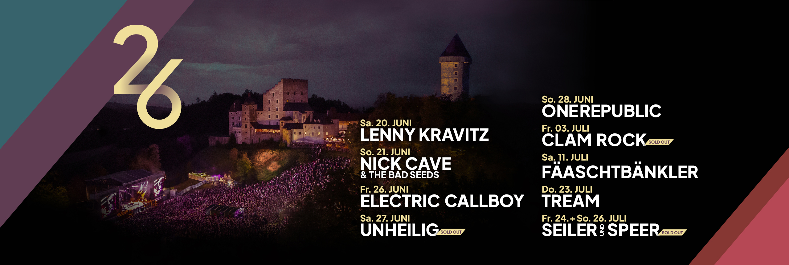 Zahlreiche nationale und internationale MusikerInnen und KünstlerInnen waren bereits Gast auf dem historischen Areal unterhalb der mittelalterlichen Festung. Für Konzerte stehen zwei verschiedene Bühnen zur Verfügung. Eine Bühne befindet sich im Garten der Burgbrauerei, eine zweite Bühne auf der Wiese des Meierhofes unterhalb der Burg. Auf der Meierhofwiese können bis zu 9.000 KonzertbesucherInnen die Auftritte der Stars in einer unvergleichbaren Atmosphäre erleben. Die Burg Clam ist aber nicht nur eine einzigartige Kulisse für legendäre Open-Air Konzerte, die mittelalterliche Festung, welche zu den schönsten Burgen Österreichs zählt, ist auch immer noch der Wohnsitz einer gräflichen Familie.
