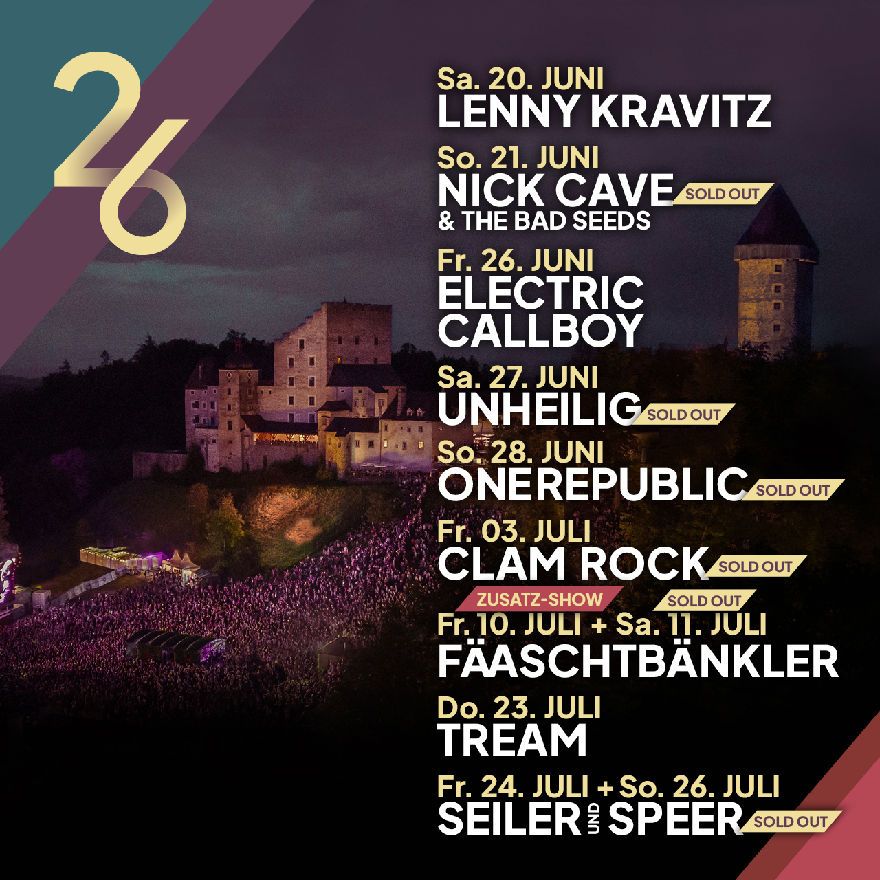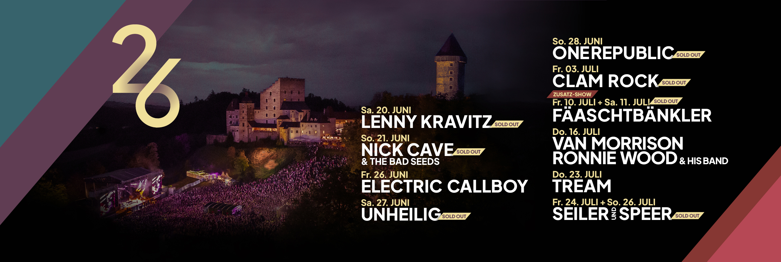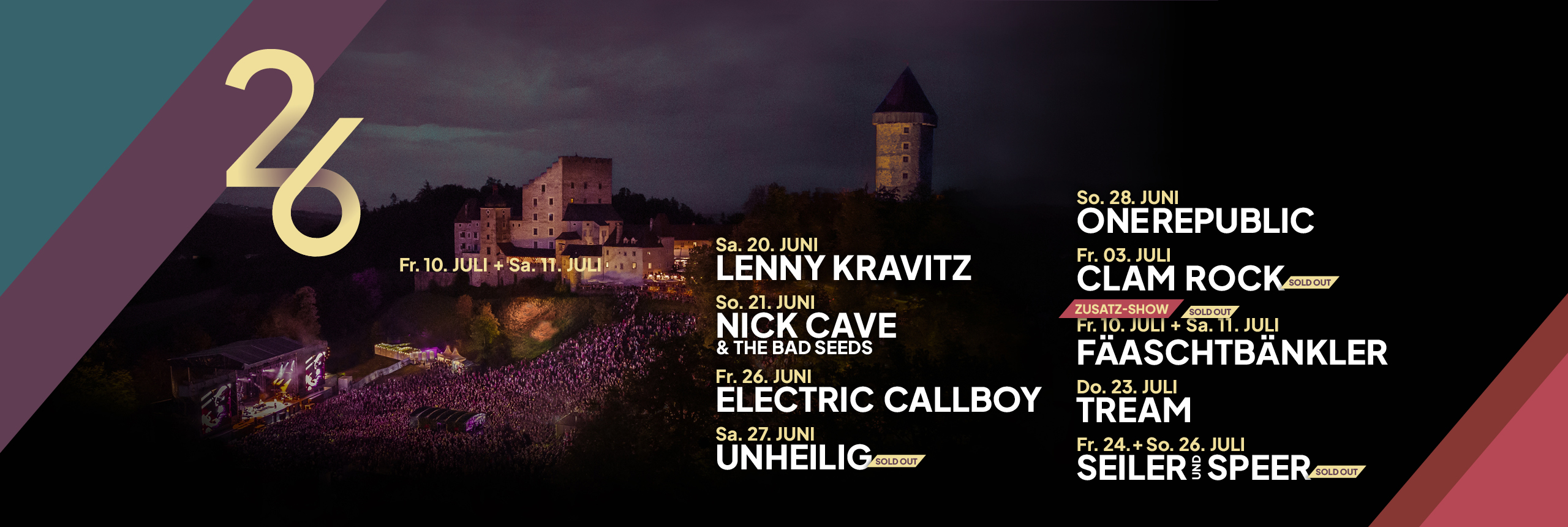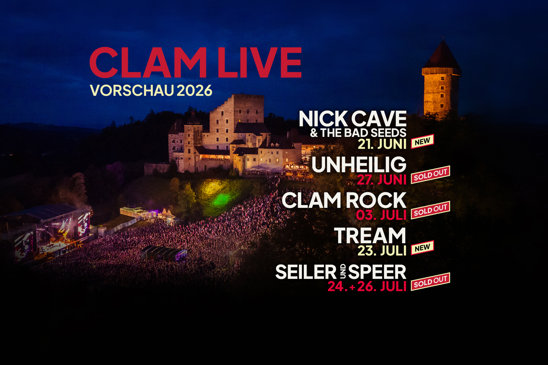 Seit mittlerweile über 30 Jahren finden jährlich im Sommer einzigartige Konzerte auf der oberösterreichischen Burg Clam statt. Als eine der außergewöhnlichsten und spektakulärsten Konzert- und Event-Location Österreichs, hat sich die Veranstaltungsreihe von CLAM LIVE im In- und Ausland einen Namen gemacht.