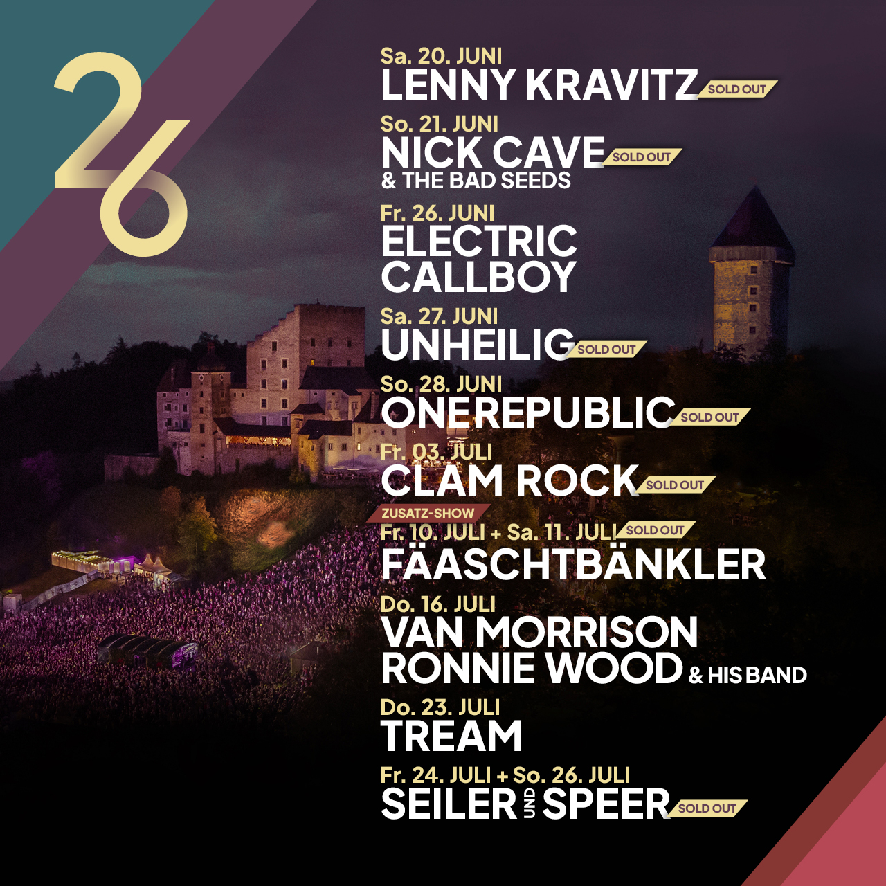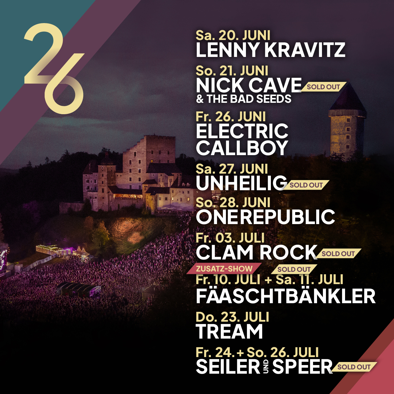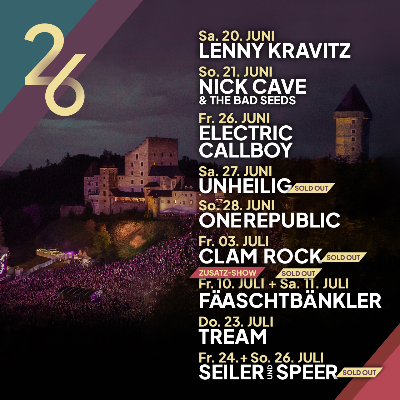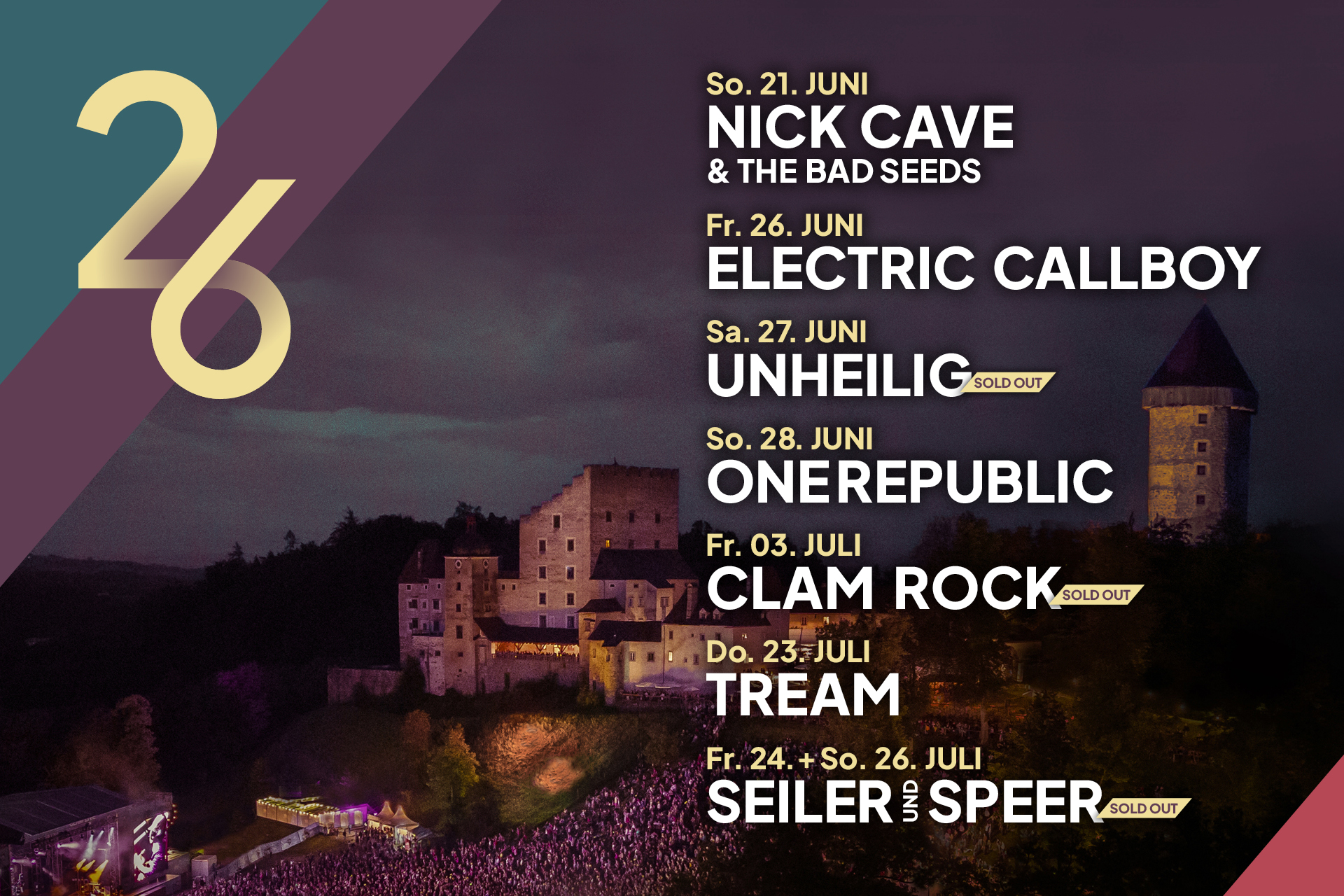 Zahlreiche nationale und internationale MusikerInnen und KünstlerInnen waren bereits Gast auf dem historischen Areal unterhalb der mittelalterlichen Festung. Für Konzerte stehen zwei verschiedene Bühnen zur Verfügung. Eine Bühne befindet sich im Garten der Burgbrauerei, eine zweite Bühne auf der Wiese des Meierhofes unterhalb der Burg. Auf der Meierhofwiese können bis zu 9.000 KonzertbesucherInnen die Auftritte der Stars in einer unvergleichbaren Atmosphäre erleben. Die Burg Clam ist aber nicht nur eine einzigartige Kulisse für legendäre Open-Air Konzerte, die mittelalterliche Festung, welche zu den schönsten Burgen Österreichs zählt, ist auch immer noch der Wohnsitz einer gräflichen Familie.